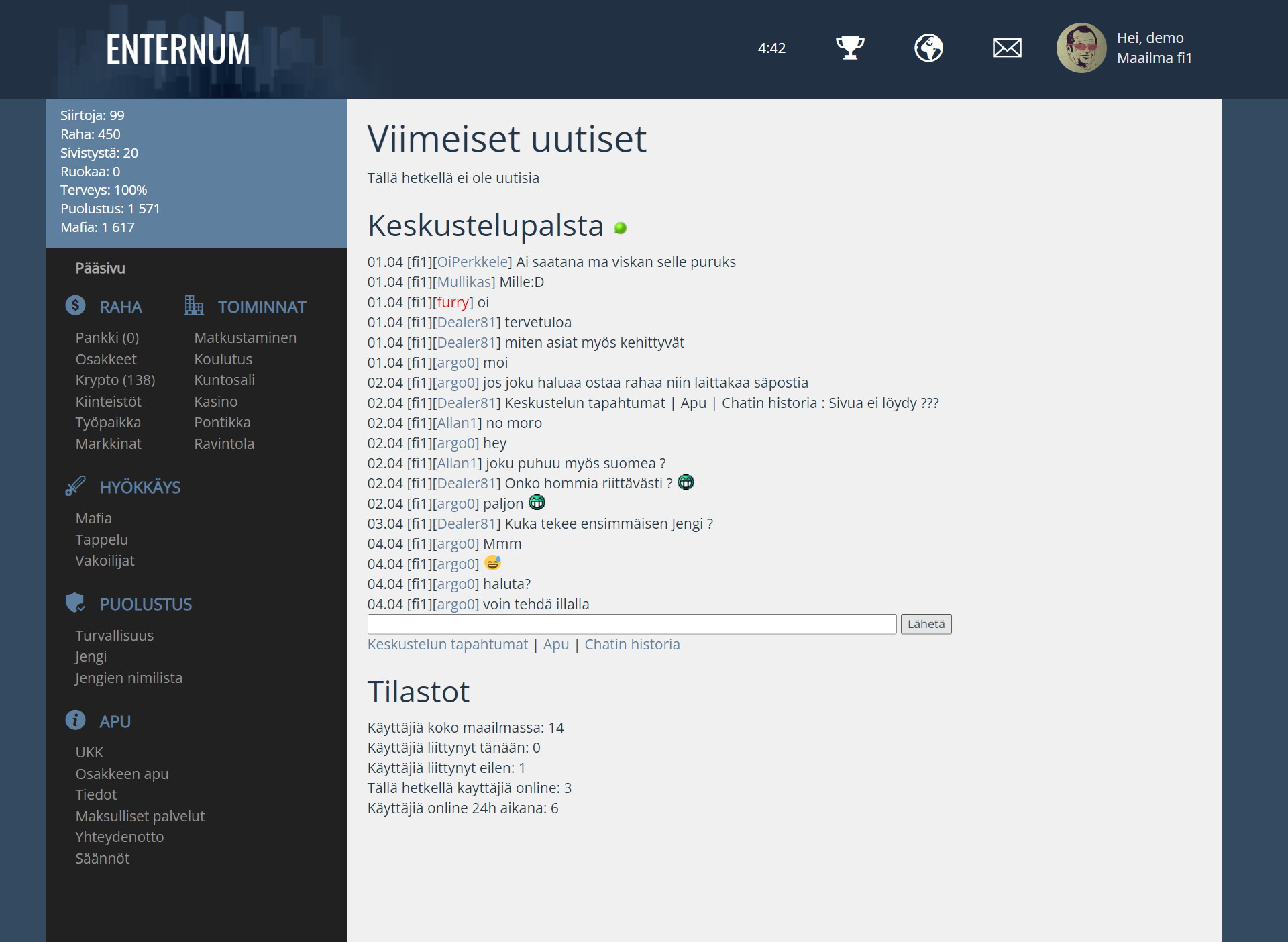 Enternum on selainpohjainen roolipeli, jossa sinä olet hahmona, joka yrittää eri tavoin saada