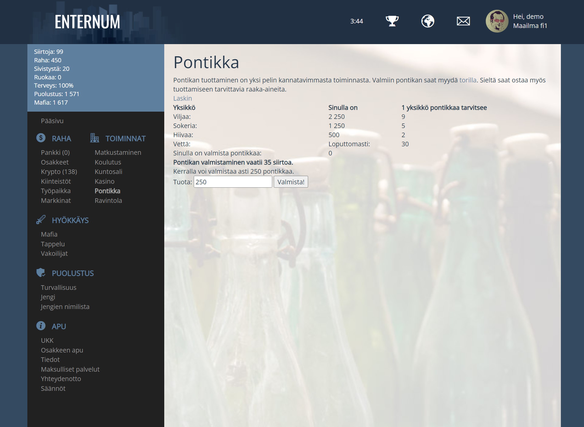 tavaroita. Rahan tienaamiseksi pelissä on monta reittiä: