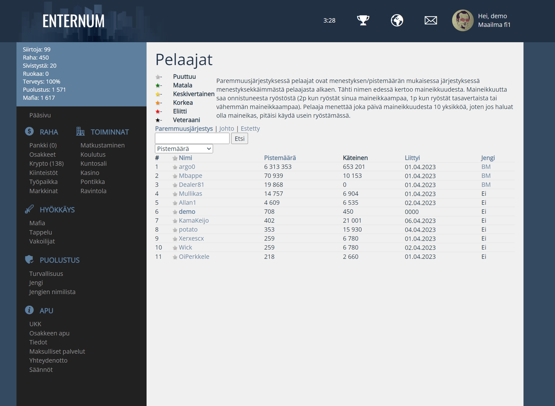 täytyy rekisteröityä Enternumin pelaajaksi ja siinä on kaksi vaihetta: